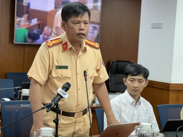 Thượng tá Nguyễn Văn Bình – Phó Trưởng Phòng Phó Trưởng phòng CSGT Công an TP.HCM thông tin tại họp báo