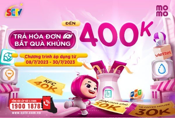 Thanh toán hóa đơn Internet, Truyền Hình cáp SCTV, Điện, Nước, Di động trả sau, Học phí, Chung cư, Môi trường bất kỳ từ 30.000 đồng, bạn sẽ được nhận gói quà đa năng trị giá 395.000 đồng.