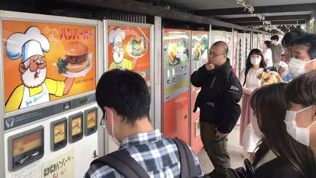 Đây là mô hình phục vụ đồ ăn nóng thu hút hàng trăm người dân vào mỗi dịp cuối tuần. Chỉ với 280 yên (2 đô la), bánh hamburger với hương vị cổ điển hoặc vị teriyaki sẽ xuất xưởng từ những chiếc máy có từ những năm 1980 trong những chiếc hộp màu vàng vui nhộn. Chỉ tốn khoảng 400 yên cho một suất ăn, khách hàng sẽ mua được một bát mì ramen chỉ trong vòng 25 giây.