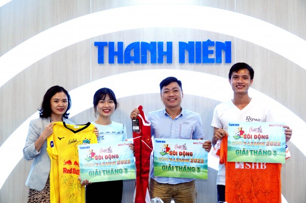 Ban tổ chức cuộc thi “ Sôi động cùng V-League 2022” đã trao giải cho các bạn đọc trúng thưởng đợt đầu tiên cuộc thi trong tháng 3 vào chiều nay 19.4 tại tòa soạn báo Thanh Niên.