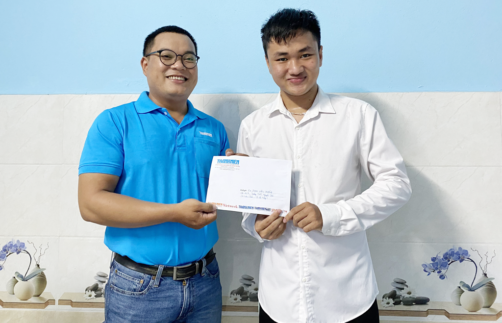 Đại diện Báo Thanh Niên đã trao suất học bổng Nguyễn Thái Bình cho em Phan Văn Trường