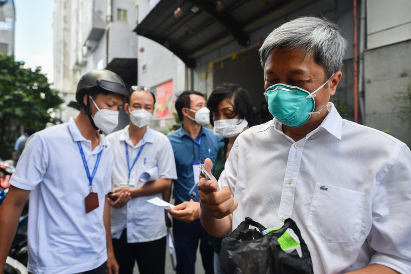 Sáng 24/8, Thứ trưởng Bộ Y tế Nguyễn Trường Sơn dẫn đầu đoàn công tác của Bộ Y tế kiểm tra việc triển khai chăm sóc, điều trị F0 sau khi người dân tự lấy mẫu xét nghiệm test nhanh kháng nguyên virus SARS-CoV-2 tại các vùng đỏ, vùng cam trên địa bàn quận Tân Phú, TP. Hồ Chí Minh.
