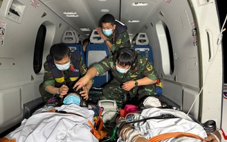 Các bệnh nhân từ 3 đảo thuộc đặc khu Trường Sa được trực thăng vận chuyển về đất liền