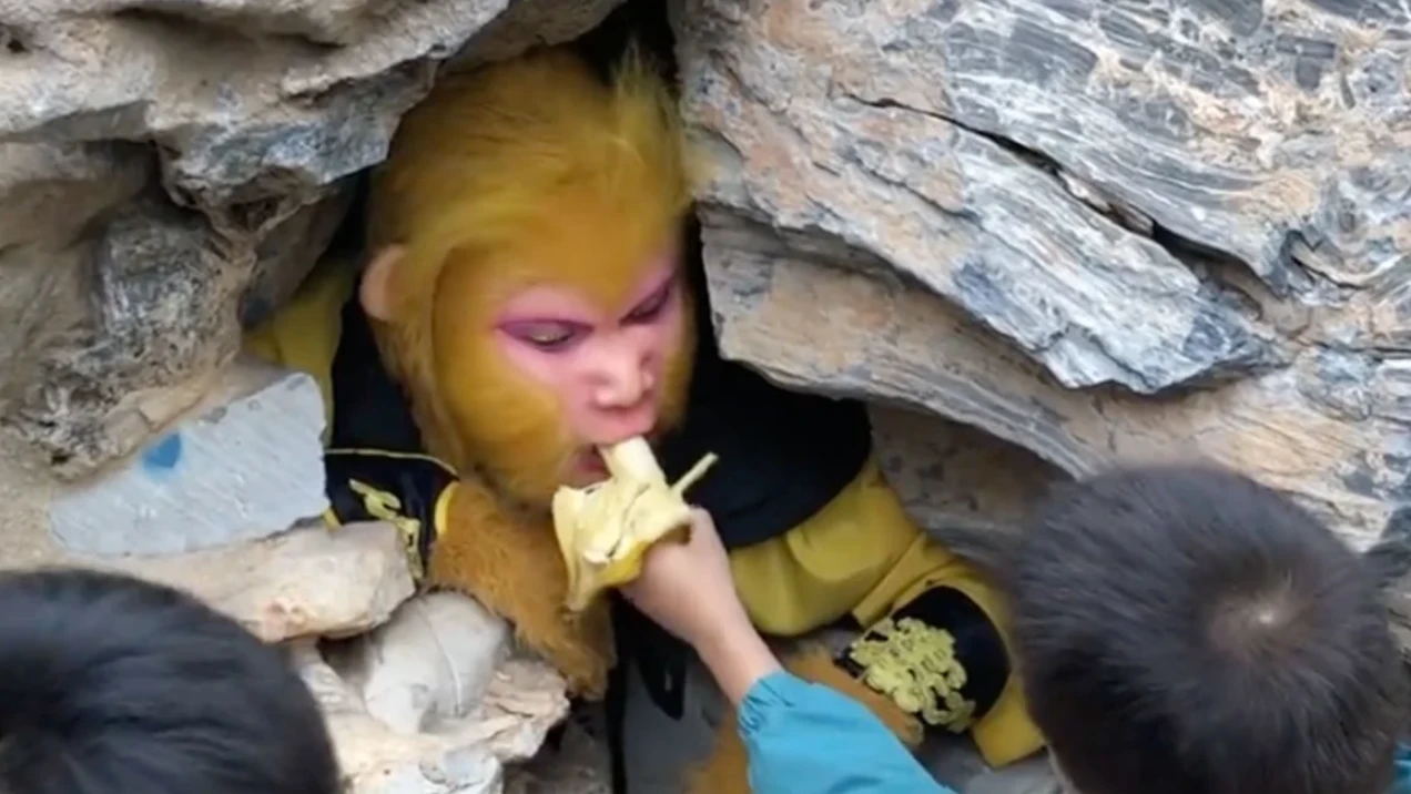 Clịp đăng trên Douyin cho thấy nhân vật Tề Thiên Đại Thánh bị nhốt trong hang