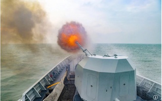 Hình ảnh được cho là tàu chiến Trung Quốc khai hỏa trong một cuộc tập trận Ảnh: Chụp màn hình SCMP