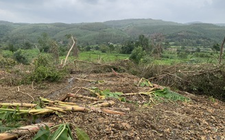 “Sáng ra tôi thấy phía sau vườn xuất hiện nhiều vết răng nứt rộng 5 – 10 cm, có vết cả một gang tay. Đất trong vườn chuối bị sụp xuống khoảng nửa mét. Nhìn lên rẫy keo phía sau núi, có một dải đất bị kéo sạt lở dài chừng 500 m, rất đáng sợ”, ông Ích cho biết.