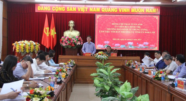 Ngày 4.4, ông Trần Tuấn Anh, Ủy viên Bộ Chính trị, Trưởng ban Kinh tế T.Ư, dẫn đầu đoàn công tác làm việc với lãnh đạo tỉnh Đắk Lắk về kết quả 5 năm thực hiện Chỉ thị số 13-CT/TW, ngày 12.1.2017 của Ban Bí thư về việc “Tăng cường sự lãnh đạo của Đảng đối với công tác quản lý, bảo vệ và phát triển rừng”.