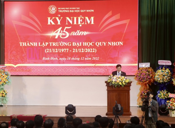 Tại buổi lễ, PGS-TS Đỗ Ngọc Mỹ, Hiệu trưởng Trường Đại học Quy Nhơn, cho biết lúc mới thành lập, trường chỉ đào tạo 5 ngành sư phạm với quy mô khoảng 4.000 sinh viên. Đến nay, trường đào tạo 49 ngành trình độ đại học với quy mô xấp xỉ 17.000 sinh viên chính quy. Trường đã và đang đào tạo 24 chuyên ngành thạc sĩ, 3 chuyên ngành tiến sĩ với quy mô gần 1.000 học viên. Ngoài ra, trường còn đào tạo đại học, sau đại học và bồi dưỡng tiếng Việt cho rất nhiều lưu học sinh Lào.
