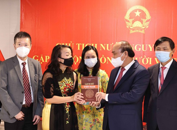 Chủ tịch nước Nguyễn Xuân Phúc tặng bộ sách Lịch sử Việt Nam gồm 15 tập cho GS Nguyễn Thị Liên Hằng và ngành Việt Nam học tại Đại học Columbia, New York, Mỹ |