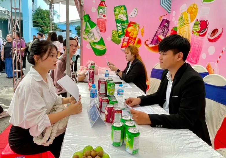 Sinh viên Trường ĐH Lạc Hồng tại ngày hội việc làm do trường tổ chức