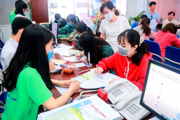 Thí sinh và phụ huynh tìm hiểu, nộp hồ sơ xét tuyển năm 2022 vào một trường đại học tại TP.HCM |