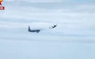 Quân đội Trung Quốc công bố video cho thấy tiêm kích J-16 phóng pháo sáng nhằm chặn đường một máy bay P-8 Poseidon của Úc trên vùng biển quốc tế hồi năm 2022 Ảnh: Quân đội Trung Quốc