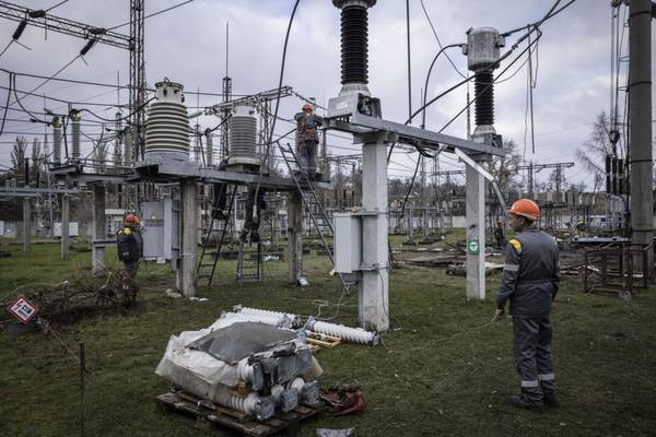Các công nhân sửa chữa cơ sở hạ tầng tại một nhà máy điện ở Kiev, ngày 4/11. Ảnh: GettyCơ quan năng lượng quốc gia của Ukraine ngày 5/11 cho biết sẽ tiếp tục cắt điện luân phiên ở 7 khu vực để cố gắng giữ cho lưới điện không bị hỏng hoàn toàn.