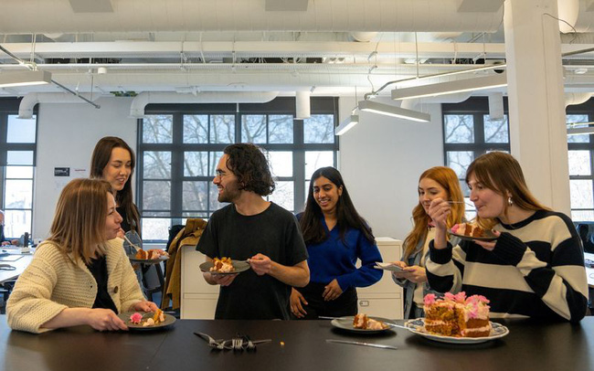 Chị Katie Mulligan mang bánh đến văn phòng và chia sẻ với các đồng nghiệp ở London, ngày 7/2/2023. (Ảnh: Reuters)