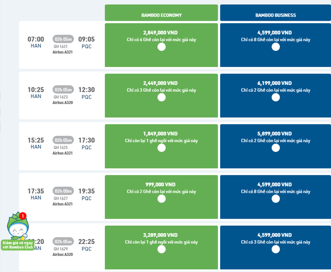 Theo khảo sát, giá vé máy bay trong tháng 7, chặng Hà Nội – Phú Quốc của hãng hàng không Vietnam Airlines hạng phổ thông rơi vào khoảng 4,2 – 7,4 triệu đồng/khứ hồi; giá vé của Bamboo Airways vào khoảng từ 4,2 – 8 triệu đồng/khứ hồi. Trong khi đó, giá vé của Vietjet Air rơi vào khoảng từ 2,4 – 4,5 triệu đồng/khứ hồi.
