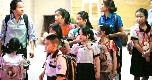 Học sinh tiểu học ra về ở một trung tâm học thêm khi trời tối mịt
