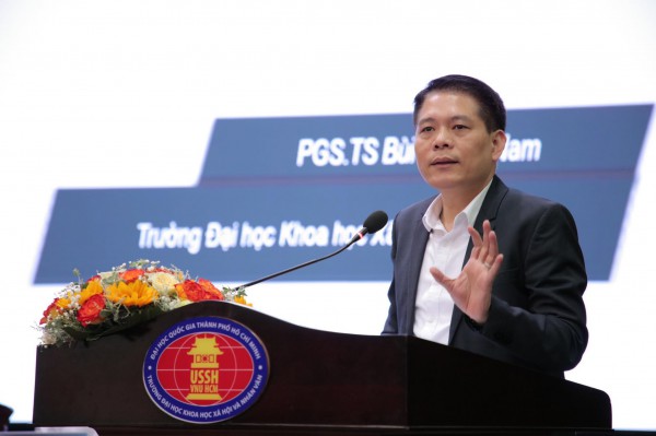 PGS-TS Bùi Thành Nam, Trưởng phòng Đào tạo Trường ĐH Khoa học xã hội và nhân văn (ĐH Quốc gia Hà Nội), chia sẻ trong hội thảo |