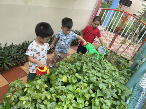| Trẻ nhỏ được chăm vườn cây trong trường mầm non |
