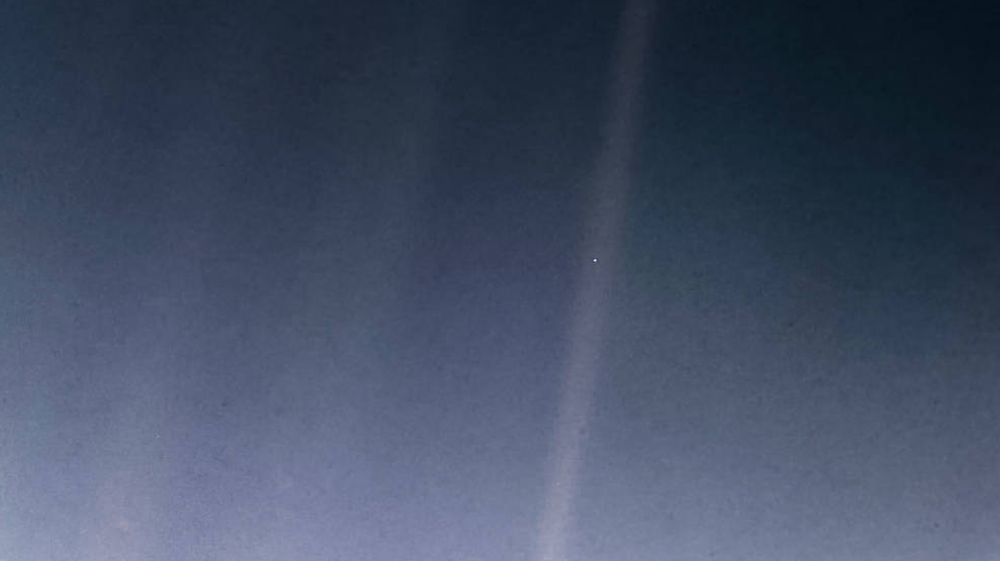Theo đó, vào ngày 14/2/1990, ở khoảng cách lên tới 6,06 tỷ km, tàu Voyager 1 của NASA đã chụp được một bức ảnh của Trái Đất so với Mặt Trời. Bức ảnh được chụp chỉ vài chục phút trước khi máy ảnh của tàu Voyager 1 được tắt nguồn một cách có chủ ý nhằm tiết kiệm năng lượng. Khi trông thấy bức ảnh này, các nhà khoa học đã rất bất ngờ vì kích thước nhỏ bé của Trái Đất giữa vũ trụ vô cùng rộng lớn.