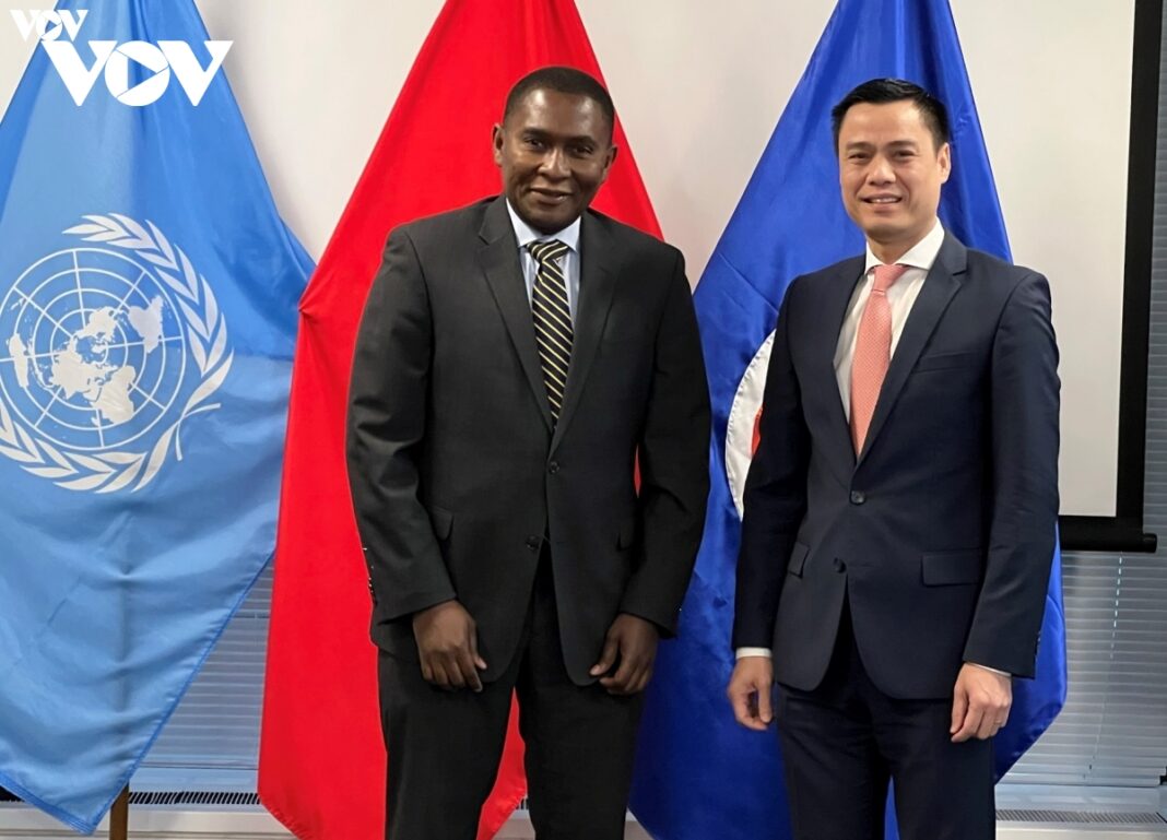 Nhằm thúc đẩy sự phối hợp giữa Liên Hợp Quốc và Việt Nam trong ứng phó với biến đổi khí hậu, Đại sứ Đặng Hoàng Giang, Trưởng Phái đoàn Đại diện thường trực Việt Nam tại Liên Hợp Quốc ngày 17/03 đã có buổi làm việc với Cố vấn đặc biệt của Tổng thư ký Liên Hợp Quốc về hành động khí hậu, Trợ lý Tổng Thư ký Selwin Charles Hart.