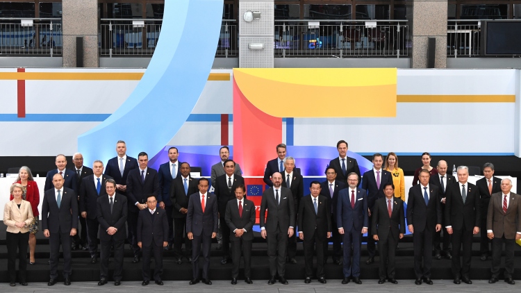 Lãnh đạo các nước ASEAN và EU tại Hội nghị Cấp cao kỷ niệm 45 năm quan hệ ASEAN – EU, ngày 14/12. Ảnh: BTCTheo bà Hằng, quyết định này sẽ góp phần đẩy mạnh hợp tác kinh tế, thương mại, ổn định chuỗi cung ứng, hướng tới thiết lập Hiệp định Thương mại Tự do (FTA) ASEAN-EU và tăng cường kết nối thông qua triển khai tuyên bố chung về kết nối năm 2020, hiệp định vận tải hàng không toàn diện ASEAN – EU, thu hẹp khoảng cách phát triển và phát triển tiểu vùng, hợp tác ứng phó với biến đổi khí hậu, chuyển đổi số, chuyển đổi năng lượng, quản lý thiên tai, bảo vệ môi trường và đa dạng sinh học, phòng và chống khai thác hải sản bất hợp pháp…