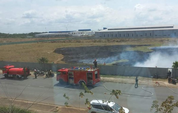 Được biết, diện tích cỏ bị cháy rộng khoảng 1 km, xung quanh có tường bao quanh. Đám cháy giữa trưa làm khói bay khắp nơi khiến nhiều người hoảng hốt.