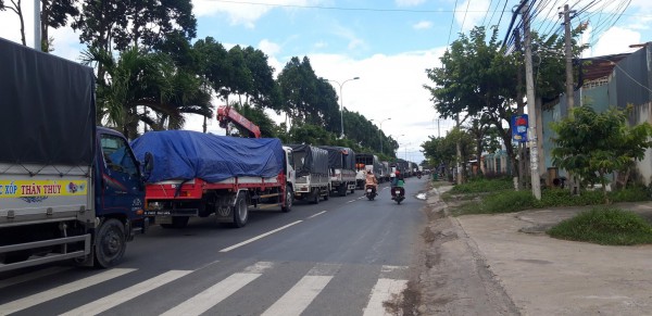 Theo ghi nhận của Thanh Niên, ô tô, xe tải ùn ứ, nối đuôi nhau dài hàng cây số hai bên bến phà, thuộc địa phận xã Thanh Đức và xã Bình Hòa Phước (H.Long Hồ). Bên làn xe máy thì thông thoáng hơn.