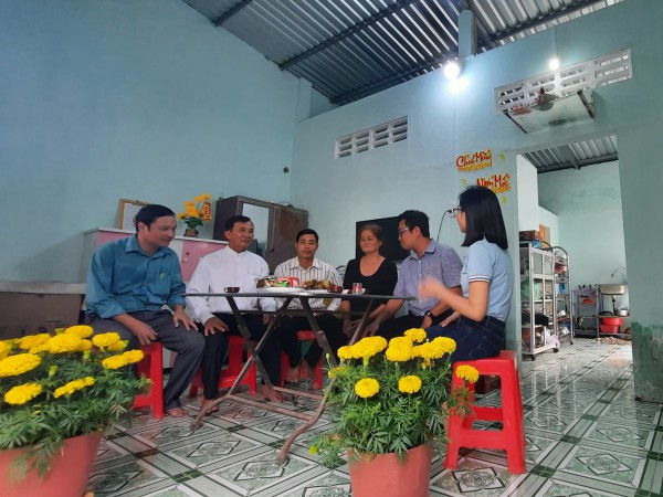 Tại mỗi nơi đến, đại diện Ủy ban MTTQ VN tỉnh Vĩnh Long, chính quyền địa phương và nhà tài trợ đã thăm hỏi sức khỏe, động viên và gửi lời chúc mừng năm mới đến các hộ gia đình khó khăn được nhận nhà mới và gửi tặng mỗi hộ 1 phần quà trị giá 1 triệu đồng.