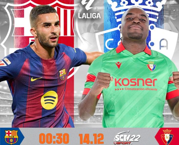 (Barcelona – Osasuna, 00h30 ngày 14/12, trực tiếp trên SCTV22)