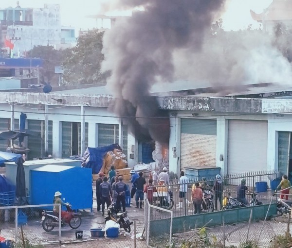 Ngày 10.2, lực lượng chức năng tỉnh Bình Định xác nhận, 2 người được đưa đến bệnh viện cấp cứu trong vụ cháy kho hàng ở cảng cá Quy Nhơn, thì 1 người tử vong.