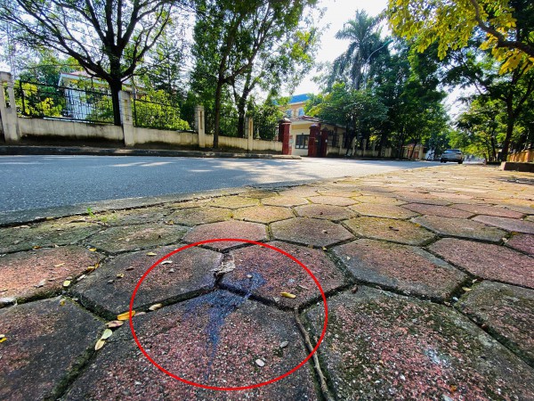 | Vết máu của ông T. tại hiện trường, trước cổng trụ sở Viện KSND H.Phúc Thọ khoảng 30 m |