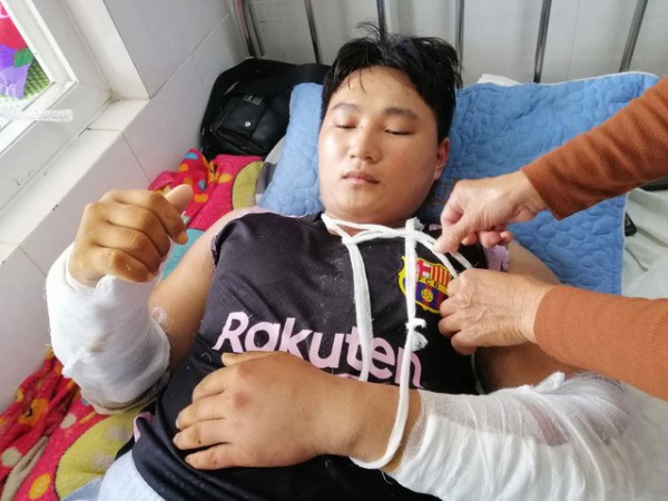 Anh Đạt, shipper bị đánh gãy 2 tay, đang điều trị tại bệnh viện