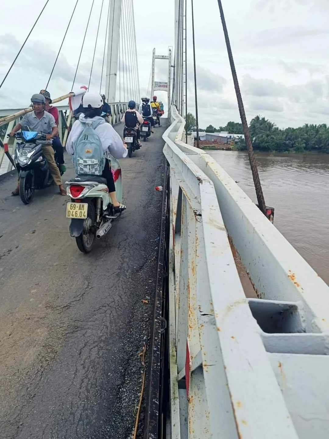 Thanh lan can cầu bị biến dạng sau khi xe quá tải đi qua