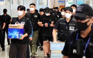 Cảnh sát Hàn Quốc áp giải những nghi phạm liên quan đến hoạt động lừa đảo tại Campuchia ngày 18.10.2025 Ảnh: REUTERS