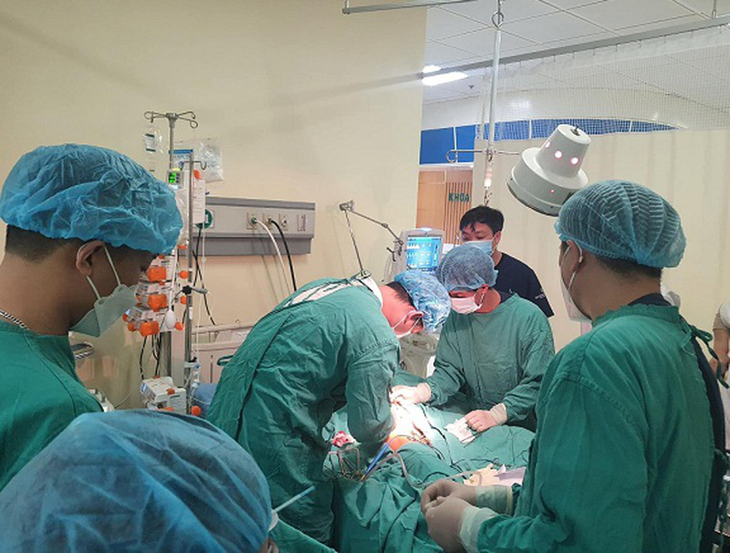 Tuy nhiên, vào lúc 18h ngày 6/3, bệnh nhân đau bụng nhiều, tụt huyết áp, siêu âm thấy nhiều dịch trong ổ bụng, chọc hút thăm dò ra dịch máu. Bệnh nhân đã được tiến hành hội chẩn toàn viện, thống nhất chẩn đoán: Sốc mất máu, chảy máu trong ổ bụng, sốc phản vệ /sau mổ lấy thai lần 2, chuyển mổ cấp cứu. Sau mở bụng thăm dò phát hiện bệnh nhân bị vỡ bàng quang gây chảy máu nhiều trong ổ bụng, tiến hành khâu mạch máu, khâu bàng quang, lau rửa ổ bụng đặt sonde dẫn lưu.