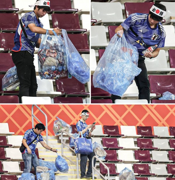 Đất nước này đã nổi tiếng tại các giải đấu quốc tế vì thiện chí của những người hâm mộ trong những năm qua, với việc CĐV Samurai Blue thường xuyên dọn dẹp rác các sân vận động trước khi rời sân. Điều đó lại được tái hiện sau chiến thắng 2-1 trước Đức. Cư dân mạng xã hội thế giới đã nhanh chóng nêu bật những hành động đẹp của người hâm mộ Nhật Bản, những người đã nán lại để giúp các nhân viên thu dọn tất cả rác trên khán đài.