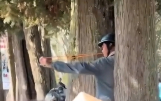 Hình ảnh ông B.V.Đ dùng ná cao su bắn chim ở bờ hồ Xuân Hương