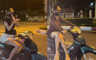 Theo đó, mấy ngày qua, mạng xã hội Facebook xuất hiện 2 đoạn clip dài khoảng 20 giây, ghi lại cảnh cô gái chạy xe máy không gắn gương chiếu hậu. Đáng chú ý, cô gái này còn buông 2 tay, múa quạt và để 2 chân một bên xe. Sự việc được một người khác ghi lại bằng thiết bị ghi hình.