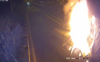 Xe cứu thương bốc cháy sau vụ tai nạn