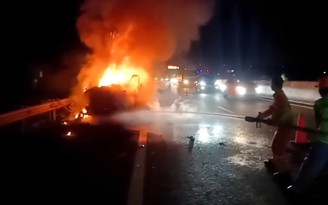 Tuy nhiên, ngọn lửa đã nhanh chóng bùng phát dữ dội và bao trùm toàn bộ ca-bin. Dù tài xế đã nỗ lực dùng bình chữa cháy dập lửa nhưng bất thành. Cột khói đen bốc cao hàng chục mét, gây ảnh hưởng đến tầm nhìn của các phương tiện khác đang lưu thông trên cao tốc.