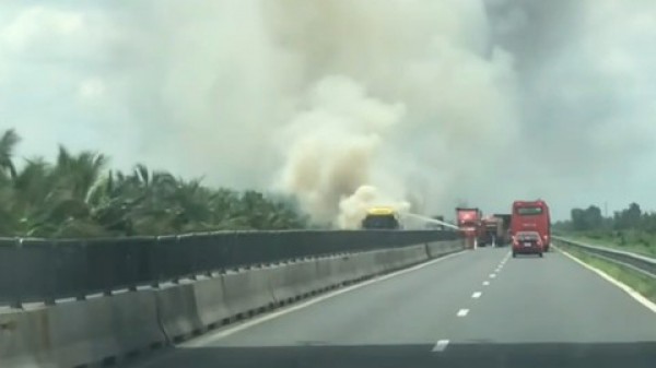 Nhận được tin báo, đơn vị quản lý đường cao tốc Trung Lương – Mỹ Thuận đã điều xe chữa cháy của đơn vị kịp thời có mặt tại hiện trường triển khai dập lửa. Không lâu sau đó, ngọn lửa đã được dập tắt hoàn toàn.