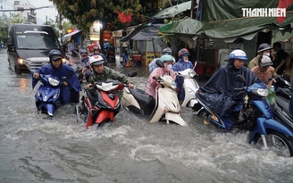 Mưa lớn gây lũ lụt kéo dài không chỉ khiến giao thông đi lại khó khăn mà còn làm nhiều phương tiện như ô tô, xe máy bị ngập nước Ảnh: B.H