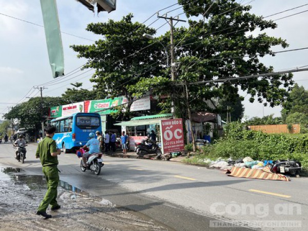 Xe máy va chạm xe khách ở TP.Thủ Đức, người phụ nữ bán vé số tử vong