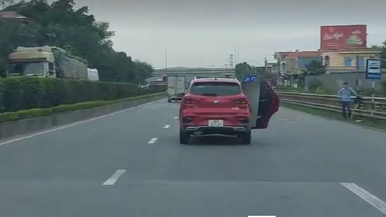 Người phụ nữ để cửa ô tô mở và chạy trên QL1A đoạn qua TX.Bỉm Sơn (Thanh Hóa) đã bị lập biên bản vi phạm hành chính, đề nghị phạt tiền và tước giấy phép lái xe 2 tháng.