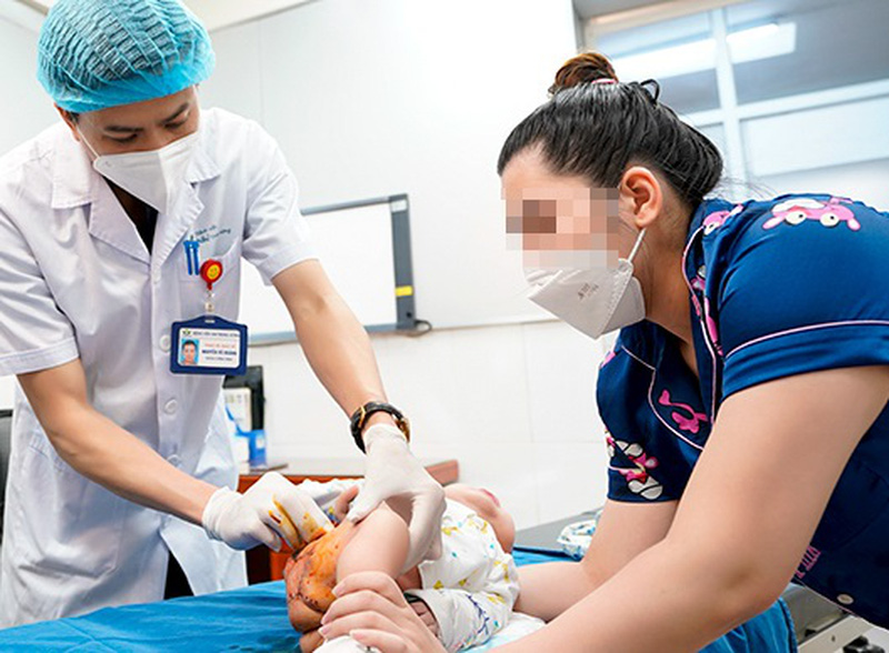 Bệnh viện Nhi Trung ương vừa phẫu thuật cắt bỏ khối u máu lớn vùng mông, đùi đã viêm loét và hoại tử nặng và tạo hình vạt da che phủ 1 thì cho bệnh nhi 5 tháng tuổi.