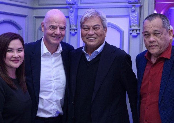 Bức ảnh gây tò mò với giới CĐV Malaysia khi Chủ tịch FIFA đăng tải chụp cùng Chủ tịch danh dự FAM, Hamidin (bìa phải)